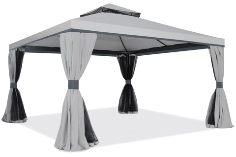 Pabellón de jardín con mosquitera y cortinas Valencia 4 x 4 m gris
