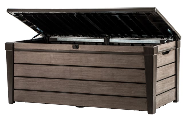 Arcón de resina de jardín de 145 x 60 x 70 cm (ancho x alto x fondo) con acabado en color gris y 455 litros de capacidad. Está fabricado en polipropileno reciclable con imitación a madera raspada dando un aspecto rústico. Fácil montaje mediante sistema clic sin necesidad de utensilios. Incorpora asas para que puedas transportarla fácilmente en tu jardín o terraza, pudiendo guardar tus accesorios de forma cómoda.