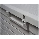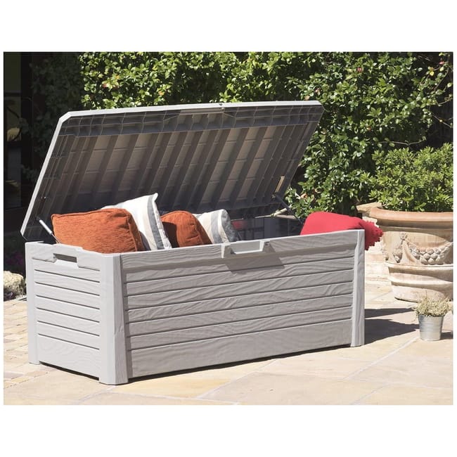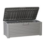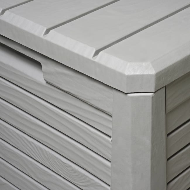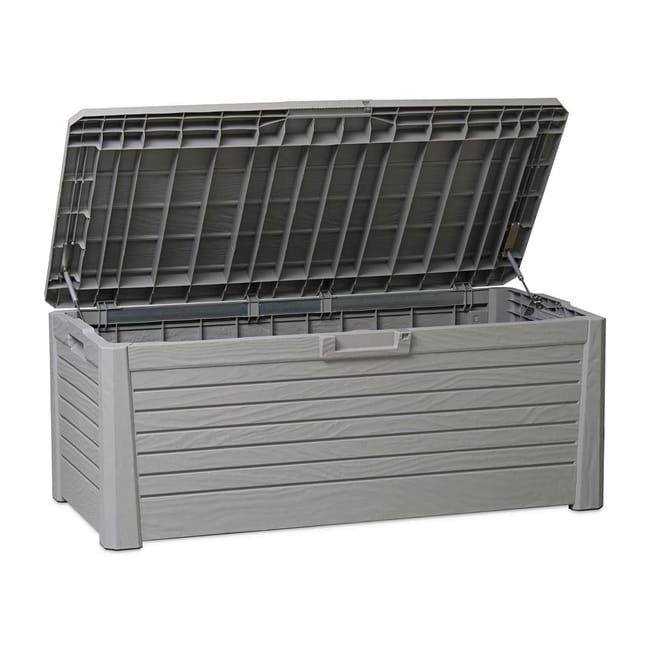 Caja de jardín FLORIDA TOOMAX volumen 550L en resina inalterable perfecta para guardar sus cojines o sus herramientas de jardín dando al mismo tiempo un chic a su exterior gracias a su color gris efecto MADERA. Dotada de un tratamiento anti UV, resiste a las heladas pero también a las intemperies. Esta robusta caja es fácil de montar. Se puede cerrar con candado (candado no incluido) y ofrece un mecanismo de apertura/cierre automático asistido.Es fácil de mover gracias a sus asas laterales. Características – – Estructura de resina resistente a las heladas, a la intemperie y a los rayos UV.- Mecanismo de apertura/cierre automático asistido.- Asas para un transporte cómodo. – Se puede cerrar con candado (candado no suministrado).- Acabado efecto ratán.- Dimensiones 147xP72xH60cm.- Volumen – 550 Litros.- Color gris efecto madera.- Peso 20kg.