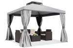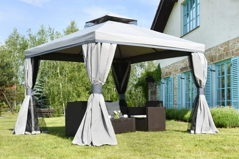 Pabellón de jardín con mosquitera y cortinas Valencia 3×4 m gris